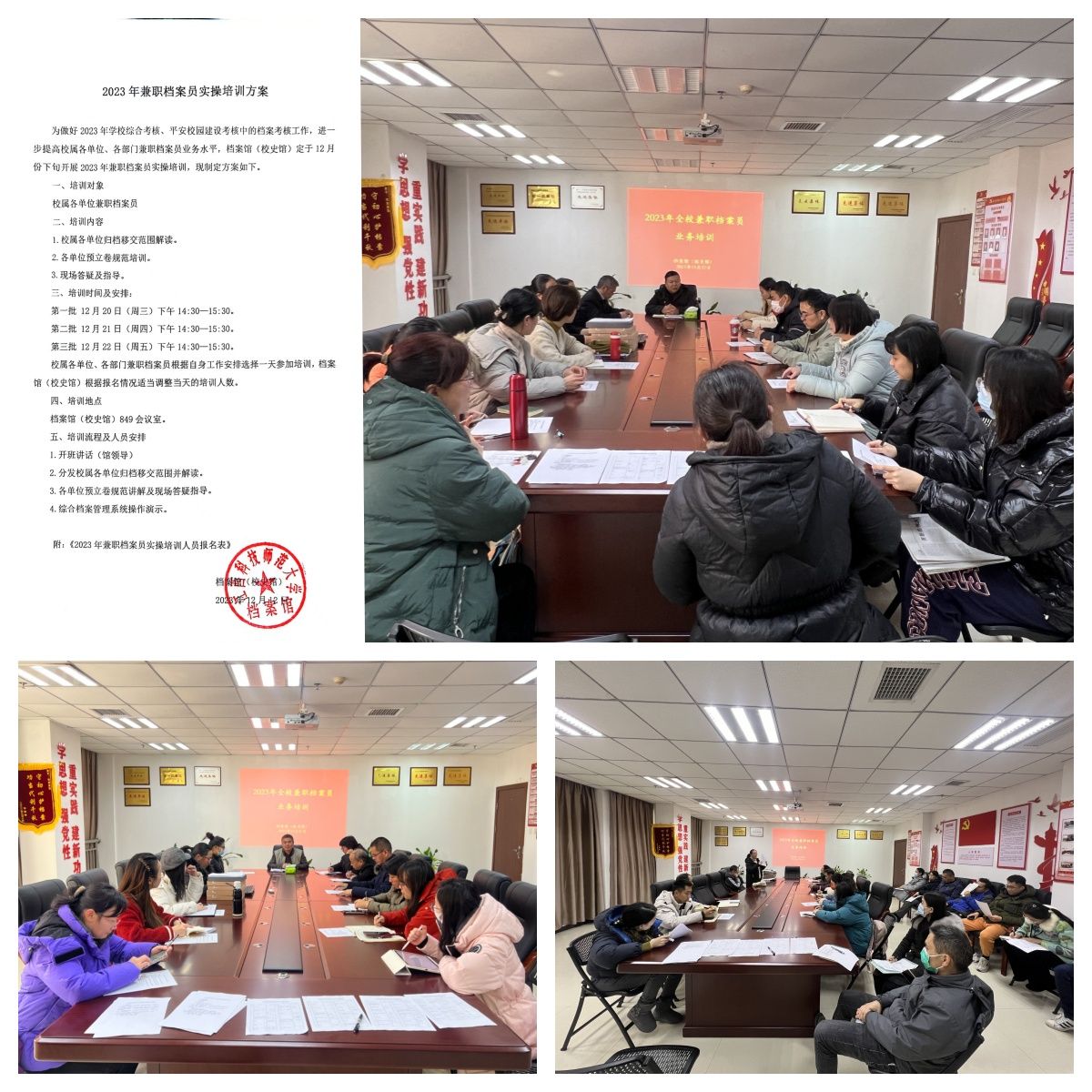 为扎实做好学校2023年度综合考核、平安校园建设考核中档案考核工作,档案馆(校史馆)于12月20-22日组织开展了2023年全校兼职档案员业务培训。